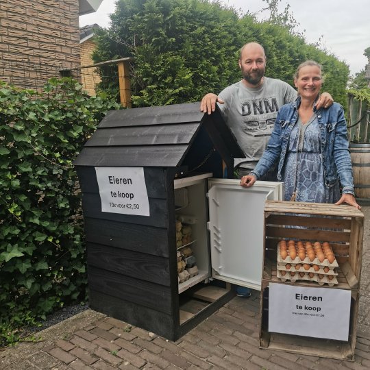 Wat zouden we zijn zonder de inkomsten uit de eierenverkoop door Gert en Hanneke van der Kolk. Altijd aanwezig bij presentaties en acties. De eieren zijn ook te koop bij hen thuis: Anklaarseweg 167, Apeldoorn